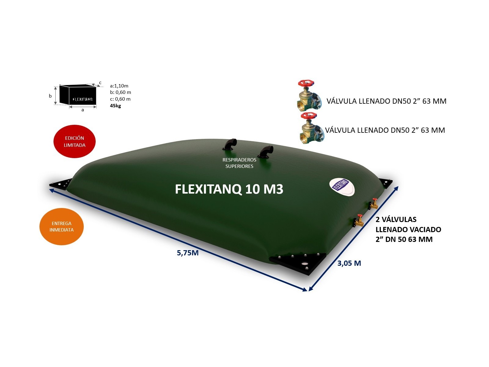 Garantía de 10 años en Flexitanq, en tejido y en la fabricación. Garantía de dos años en los accesorios.